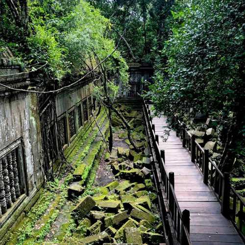 3. Beng Mealea is an Angkorian temple with a flat plan commonly referred to as a two-dimensional counterpart of Angkor Wat.
